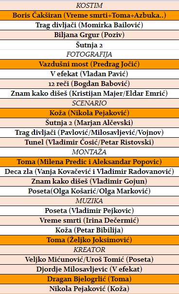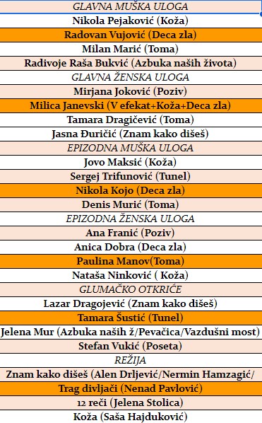 Žiriji struke 14. Festivala drama i serija u sastavu: glumica TIJANA KONDIĆ, reditelj FILIP ČOLOVIĆ, scenarista DRAGOLJUB STOJKOVIĆ, direktor fotografije DUŠAN IVANOVIĆ, kostimografkinja IVA SARAPA, montažer AREF ZAABI, i kompozitor MARKO MATOVIĆ, za nagradu ZLATNA ANTENA u 13 kategorija nominovali su sledeće aktere TV serija koje su u zvaničnoj selekciji: